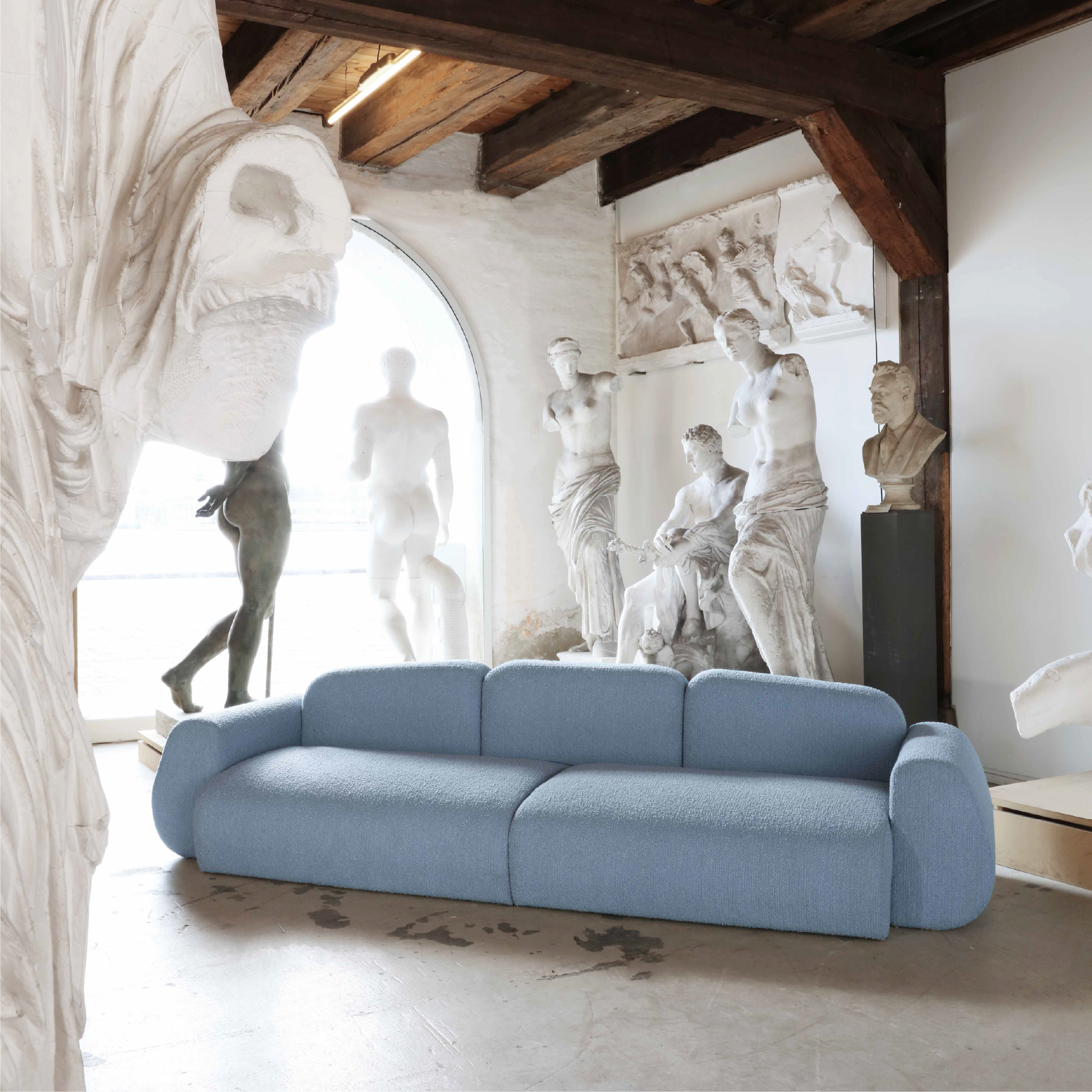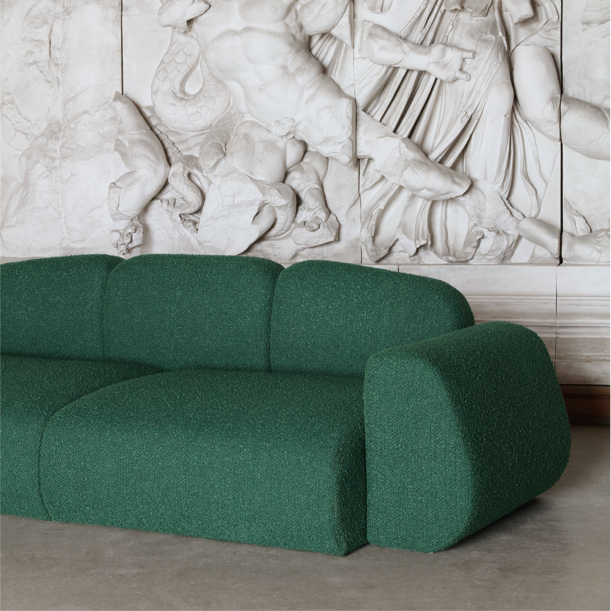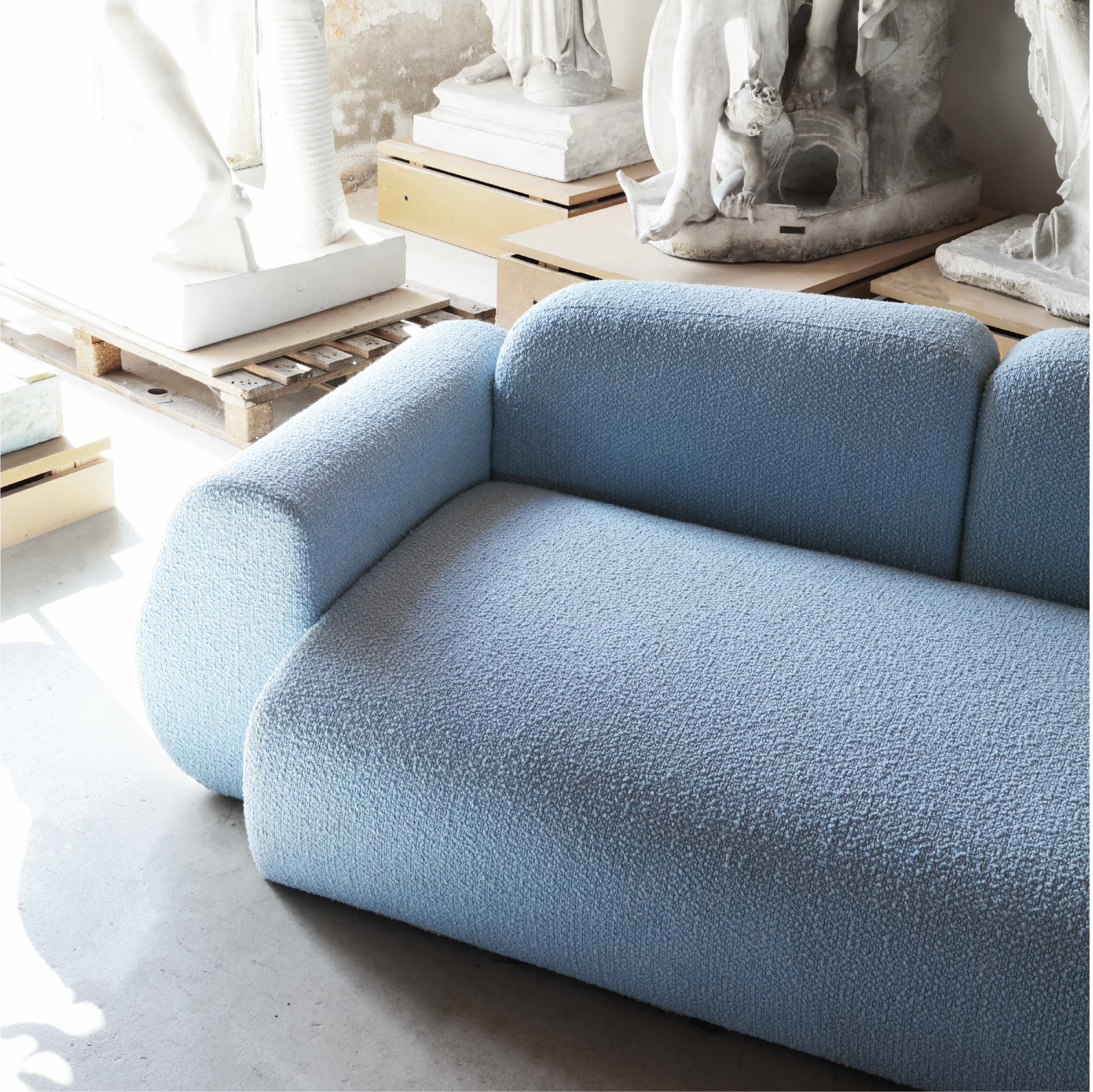 MAGMA is created from a wish of designing a sofa that encourages the eye to wander and to examine the different shapes and curves just like taking a walk on the beach where your eyes are drawn to the ground with stones and pebbles. This idea of individuality and distinctiveness has been carried over in the creation of this sofa built from different forms that when combined create this soft, organic yet playful expression.