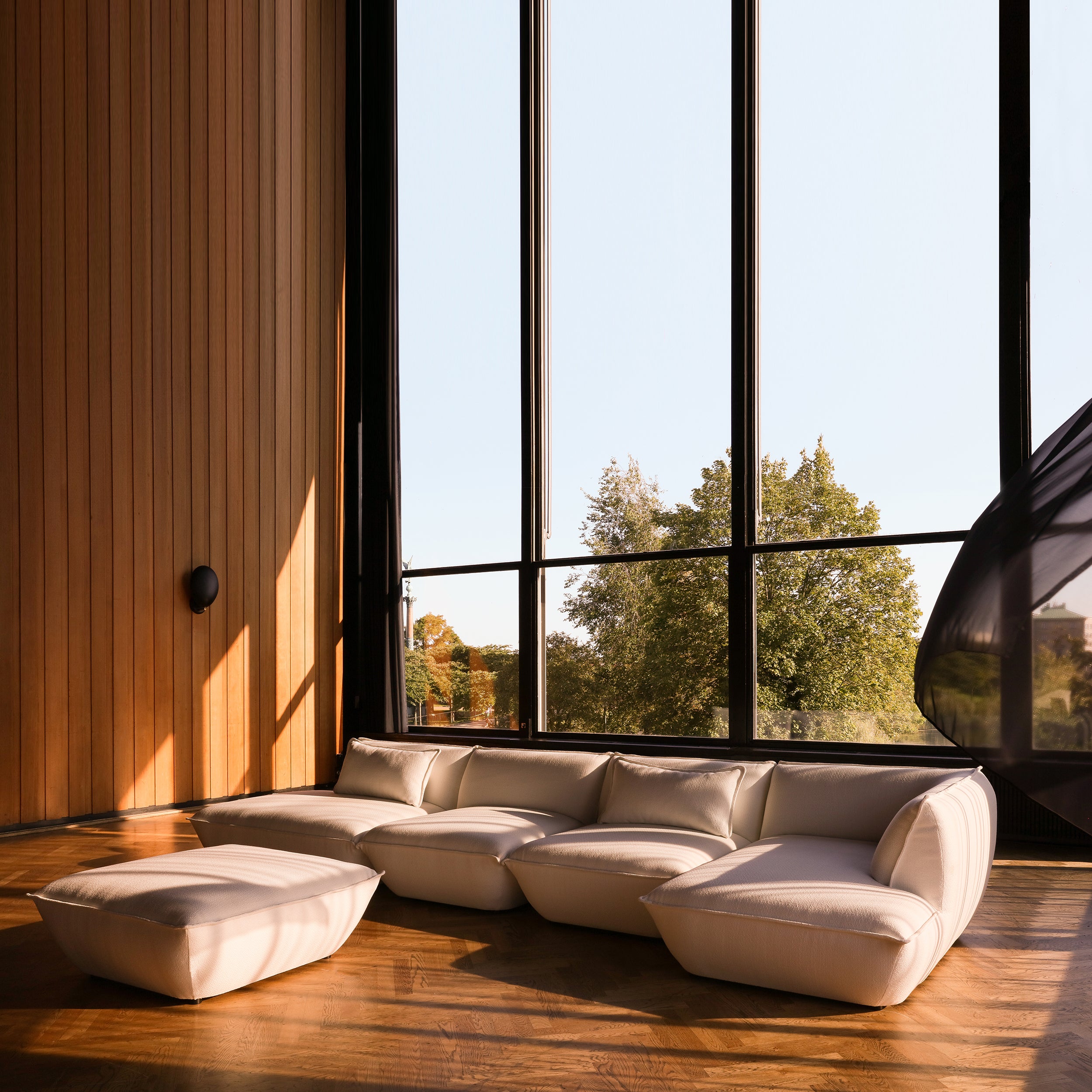 FRIDAY is a modular sofa consisting of eight different modules with a consistantly simple, soft and almost levitating expression no matter the angle. All FRIDAY modules are designed to be enjoyed both as a single statement piece and combined in numerous ways giving creativity and needs free rein.